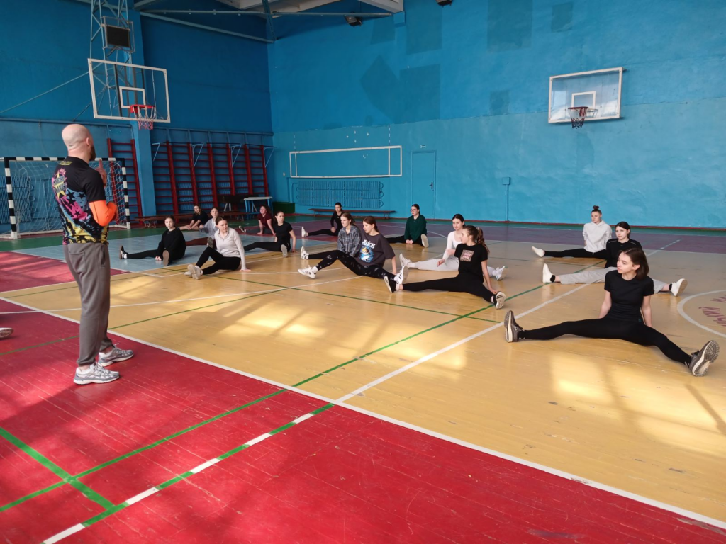 У межах проєкту було організовано тренінг та майстер-клас із дисципліни «черліденг». Теоретичну частину заняття провів голова відокремленого підрозділу Федерації черліденгу та чирлідингу України у Хмельницькій області, тренер з черліденгу, гімнастики та акробатики Олексій Шуляков. Під час теоретичного блоку учасники ознайомилися з регламентом фізкультурно-оздоровчого заходу «Пліч-о-пліч» Всеукраїнської студентської ліги з черліденгу серед здобувачів вищої освіти на 2025–2026 навчальний рік.