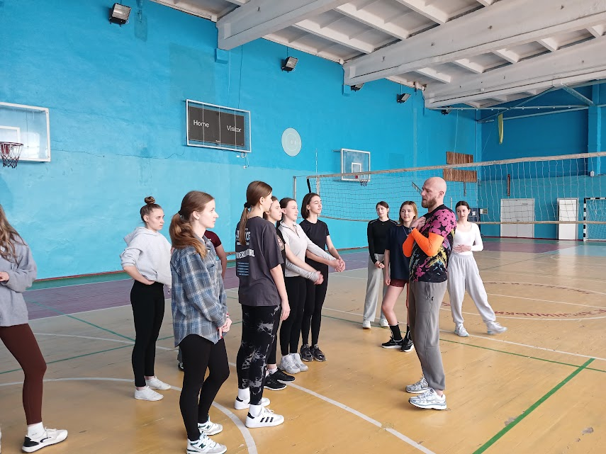 Практична частина майстер-класу відбулася у спортивній залі. Її провели тренери Олексій та Дарина Шулякови – представники шепетівської команди «Cheer Planet». Учасники мали змогу відпрацювати базові елементи та рухи денс-черліденгу, удосконалити координацію, командну взаємодію та отримати практичні навички, необхідні для подальшої участі у змаганнях.